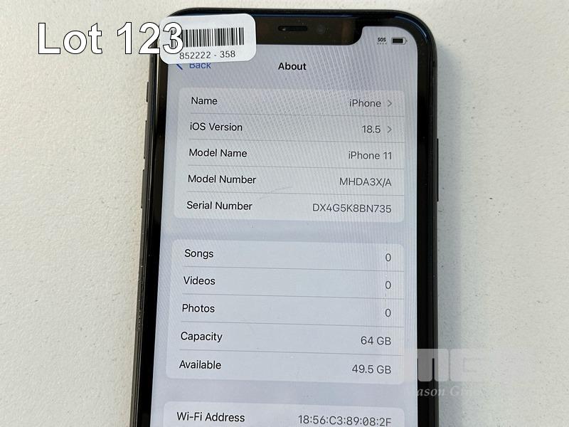 APPLE iPHONE 11, 64GB, MODEL MHDA3X/A, A2221, BLACK, BATTERY HEALTH 87% (NO CABLE, NO CHARGER) (NOTE: SCRATCHES ON SCREEN) S/N:DX4G5K8BN735
