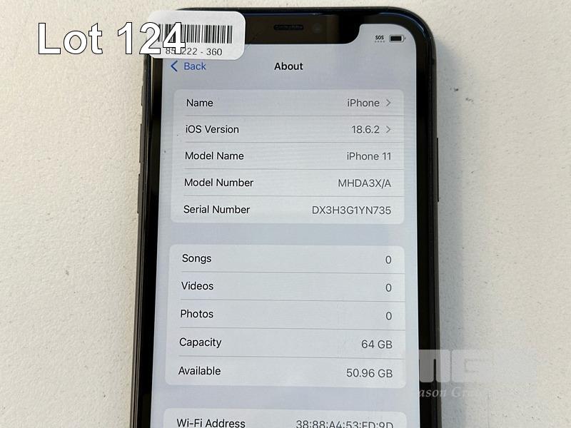 APPLE iPHONE 11, 64GB, MODEL MHDA3X/A, A2221, BLACK, BATTERY HEALTH 84% (NO CABLE, NO CHARGER) (NOTE: SCRATCHES ON SCREEN) S/N:DX3H3G1YN735