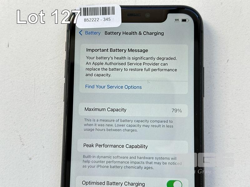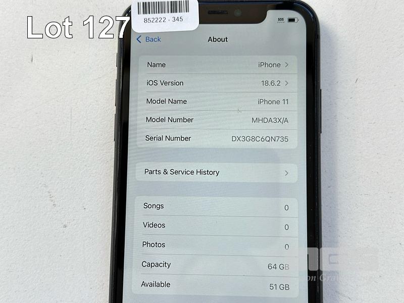 APPLE iPHONE 11, 64GB, MODEL MHDA3X/A, A2221, BLACK, BATTERY HEALTH 79% (NO CABLE, NO CHARGER) (NOTE: BATTERY SERVICE MESSAGE) S/N:DX3G8C6QN735