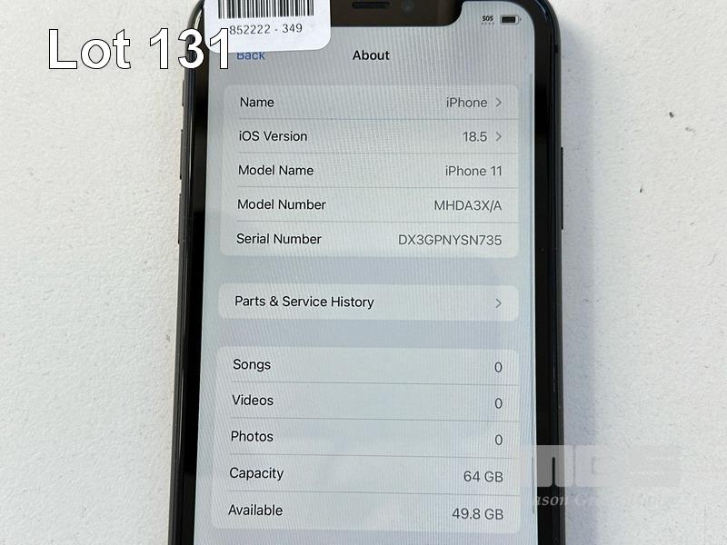 APPLE iPHONE 11, 64GB, MODEL MHDA3X/A, A2221, BLACK, BATTERY HEALTH 76% (NO CABLE, NO CHARGER) (NOTE: BATTERY SERVICE MESSAGE) S/N:DX3GPNYSN735