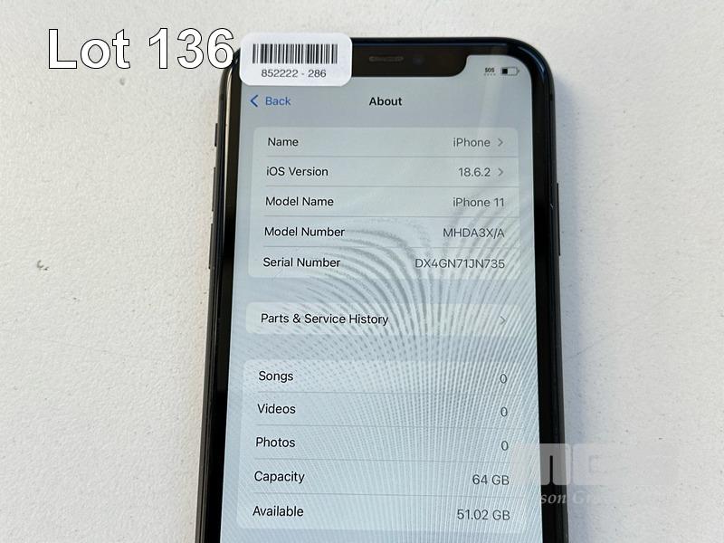 APPLE iPHONE 11, 64GB, MODEL MHDA3X/A, A2221, BLACK, BATTERY HEALTH 79% (NO CABLE, NO CHARGER) (NOTE: SCRATCHES ON SCREEN, BATTERY SERVICE MESSAGE) S/N:DX4GN71JN735