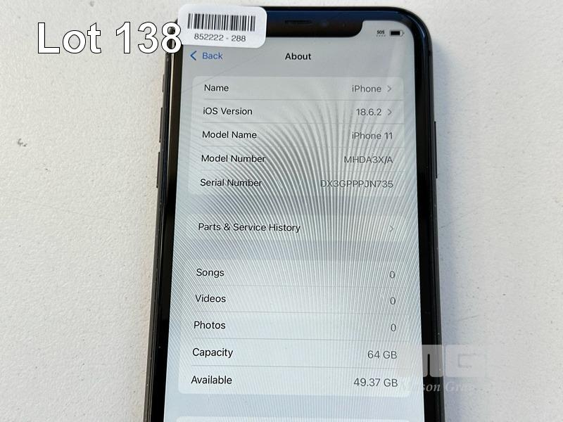 APPLE iPHONE 11, 64GB, MODEL MHDA3X/A, A2221, BLACK, BATTERY HEALTH 77% (NO CABLE, NO CHARGER) (NOTE: SCRATCHES ON SCREEN, BATTERY SERVICE MESSAGE) S/N:DX3GPPPJN735