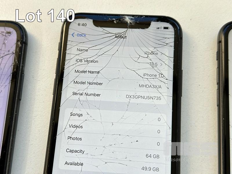 9 x APPLE iPHONES INC. - 2 x APPLE iPHONE 11, 64GB, MODEL MHDA3X/A, A2221 (DISPLAY NOT RECOGNISED MESSAGE) - 7 x APPLE iPHONE 11, 64GB, MODEL MHDA3X/A, A2221 (NO CABLES, NO CHARGERS) (NOTE: ALL VARIOUS DAMAGE) S/N:DX3H3TDKN735, DX3GPNU5N735, DX4GN6N1N735, DX4GN6QBN735, DX4GN6PNN735, DX3GQCCPN735, DX4GN6V9N735, DX3GPPBUN735, DX3H38HEN735