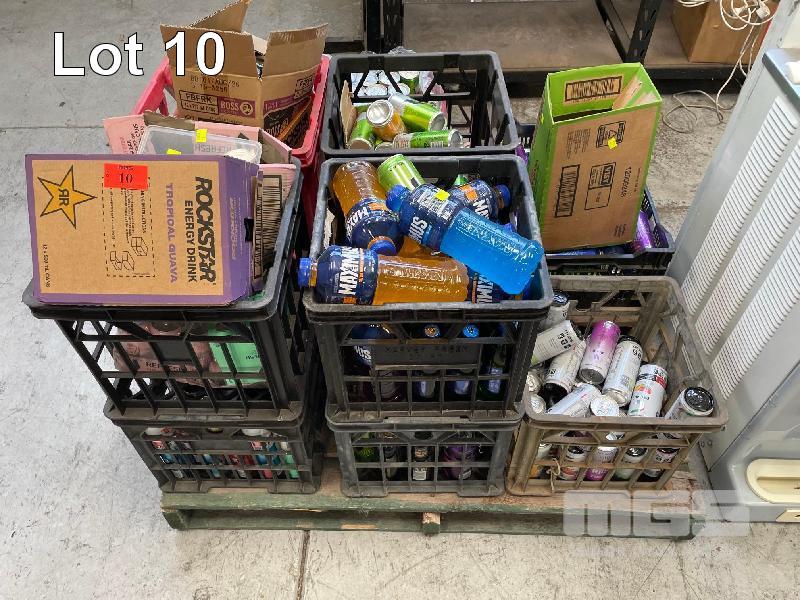 LARGE QUANTITY OF DRINKS ROCKSTAR, MAXIMUS, BOSS COFFEE, ETC