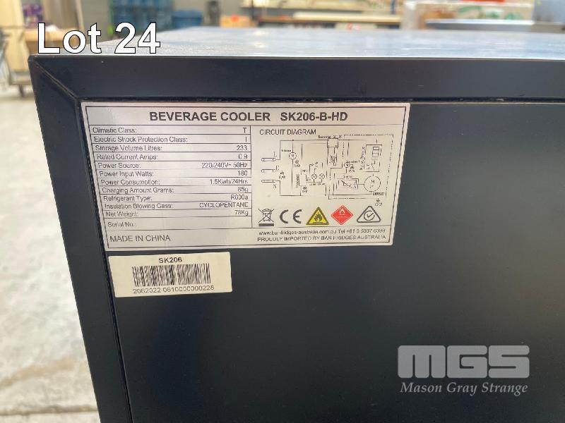 UNDERBENCH DISPLAY FRIDGE, SCHMICK MOD: SK206-B-HD 2 DOOR 233 LITRE 3 TIER 240V, 10 AMP