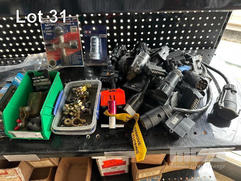 BATTERY TERMINALS, TRAILER ADAPTORS, CABLE LOCK SET, TERMINAL CLEANER CONTENTS 1 x SHELF