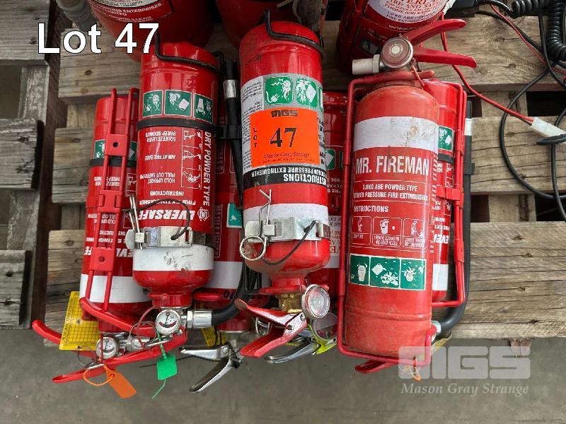 9 x FIRE EXTINGUISHERS, POWDER TYPE & 2 x WET FLOOR SIGNS