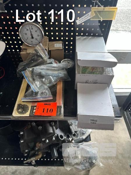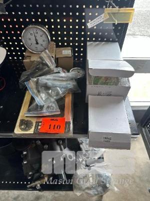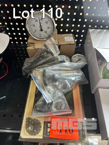 ASSORTED PRESSURE GAUGES, TURBO MISER PARTS & TIE DOWNS