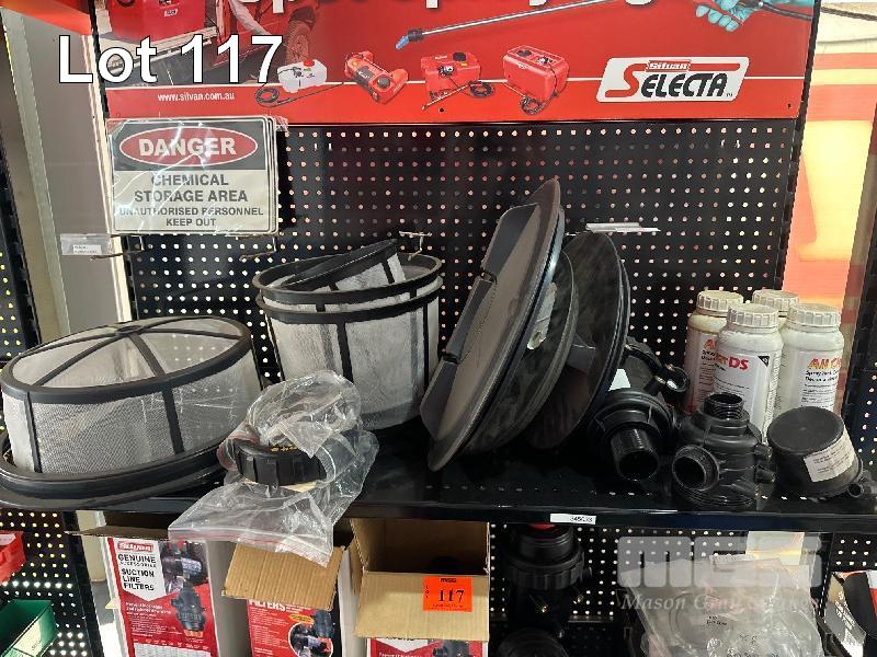 SILVAN CARTRIDGES, INLINE FILTERS & TANK CLEANER CONTENTS 3 x SHELVES
