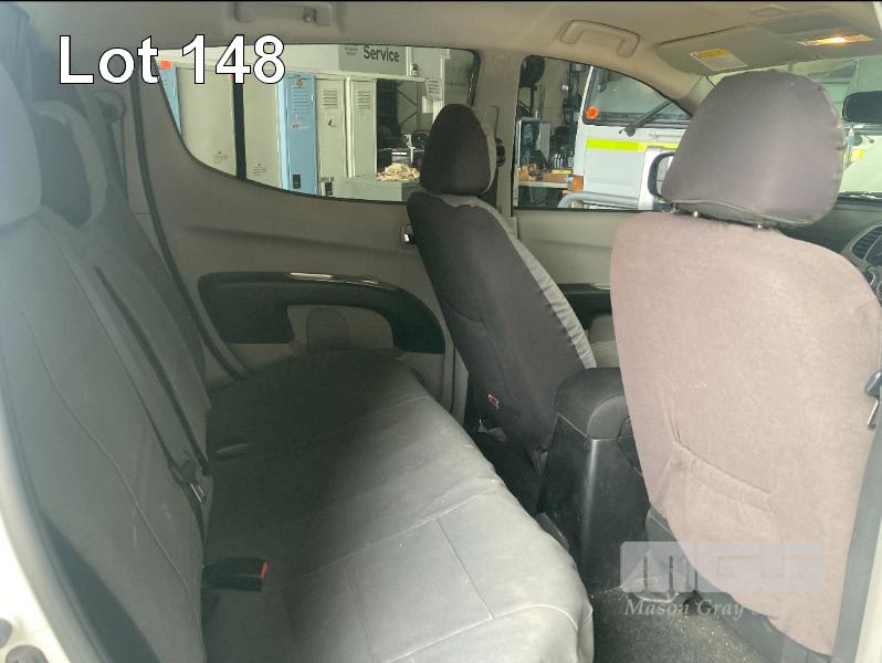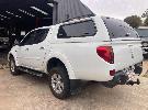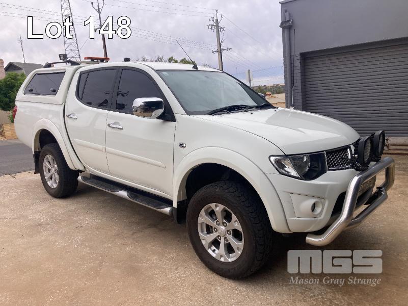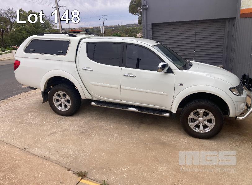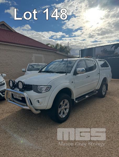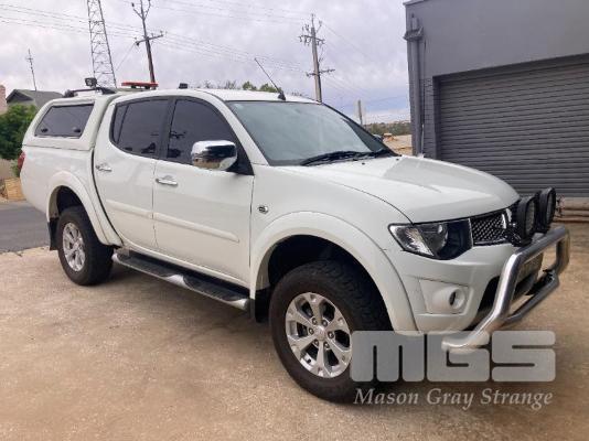 2013 MITSUBISHI TRITON GLX-R MNMY13 DUAL CAB UTILITY 4x4 REG: S828AXM VIN: MMAJYKB40DD006050 ODO: 179,341km 2.5 LITRE DTFI DT4 DIESEL TURBO, 5 SPEED AUTOMATIC TRANSMISSION, WHITE DUCO, 4 DOORS, 5 SEAT, 4x4 NUDGE BAR, SPOTLIGHTS, ALLOY WHEELS, SIDE STEPS, MITSUBISHI CANOPY