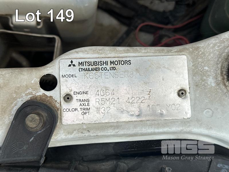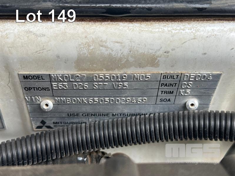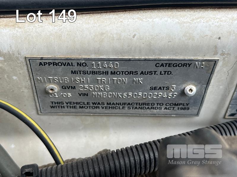 2005 MITSUBISHI TRITON MK SINGLE CAB UTILITY 2WD REG: XEG 527 VIN: MMB0NK6505D029469 ENG: 4G64 ODO: 376,148kms SHOWING 2.4 LITRE 4 CYLINDER PETROL, 5 SPEED MANUAL TRANSMISSION, 2 DOORS, 3 SEAT, 2WD SERVICE BODY WITH UNDERMOUNT TOOL BOXES STEEL TRAY, WORK LIGHTS, TOW BALL (WITH OWNER'S MANUAL)