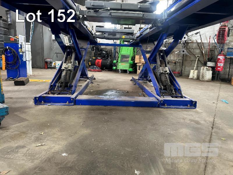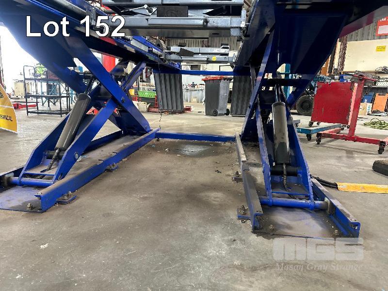 SCISSOR HOIST, CAIZER MOD: W45 MAIN: 4500kg WITH WHEEL ALIGNMENT CUTOUTS, 2 x AIR OP JACKING BEAMS, 2000kg EACH CONSOLE CONTROL, PENDANT CONTROL 415V