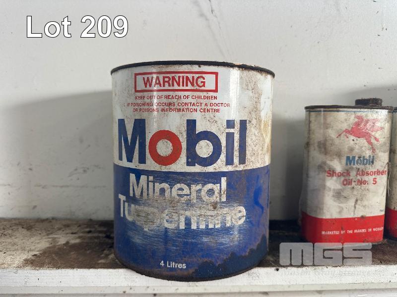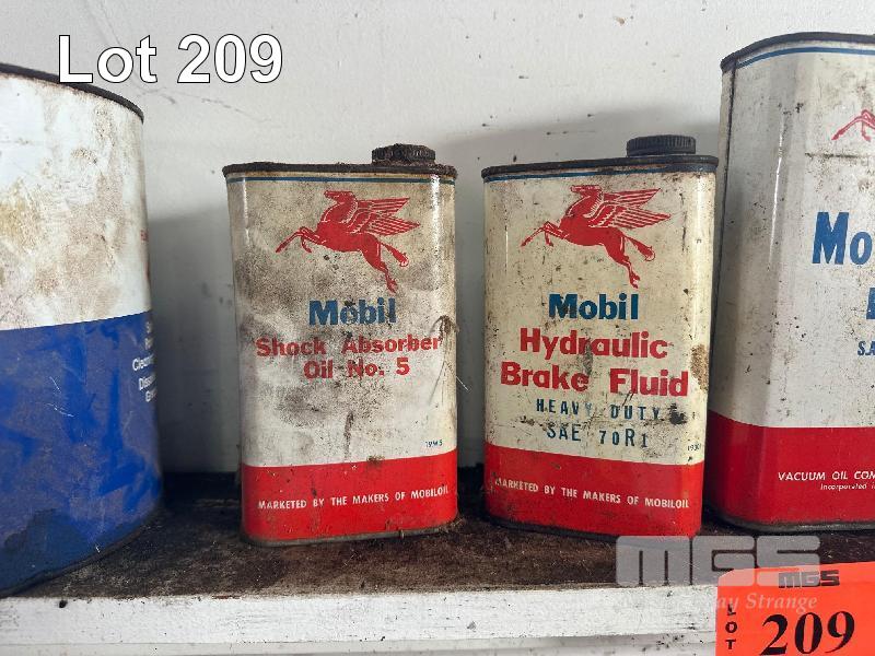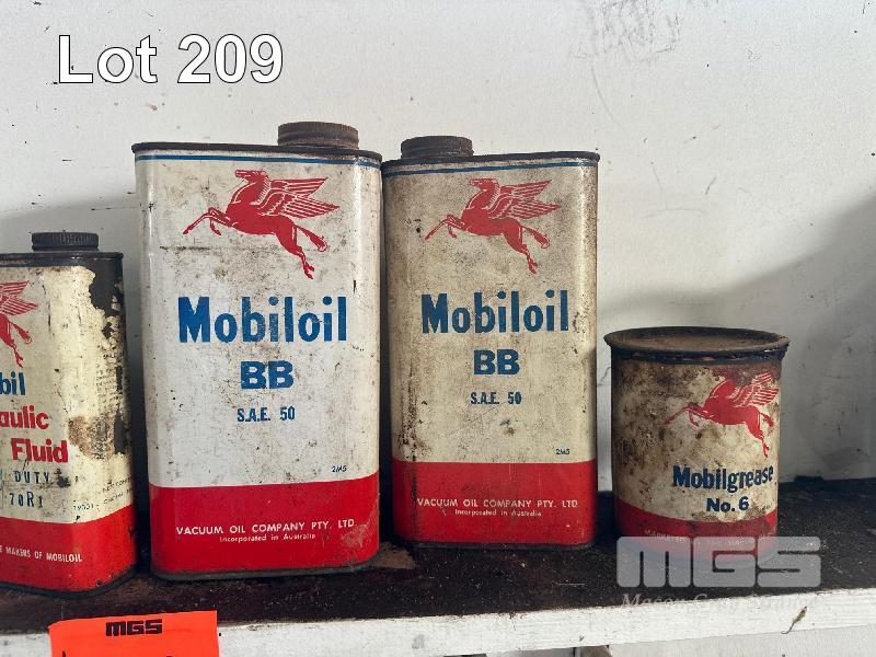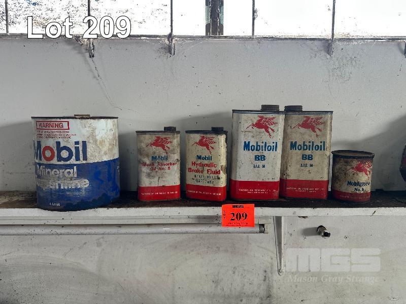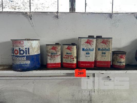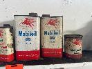 MOBIL OIL COLLECTION, 6 PIECE, SHOCK OIL, ENGINE OIL, GREASE, TURPS