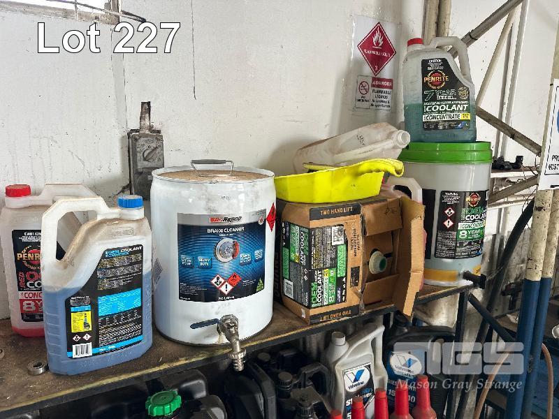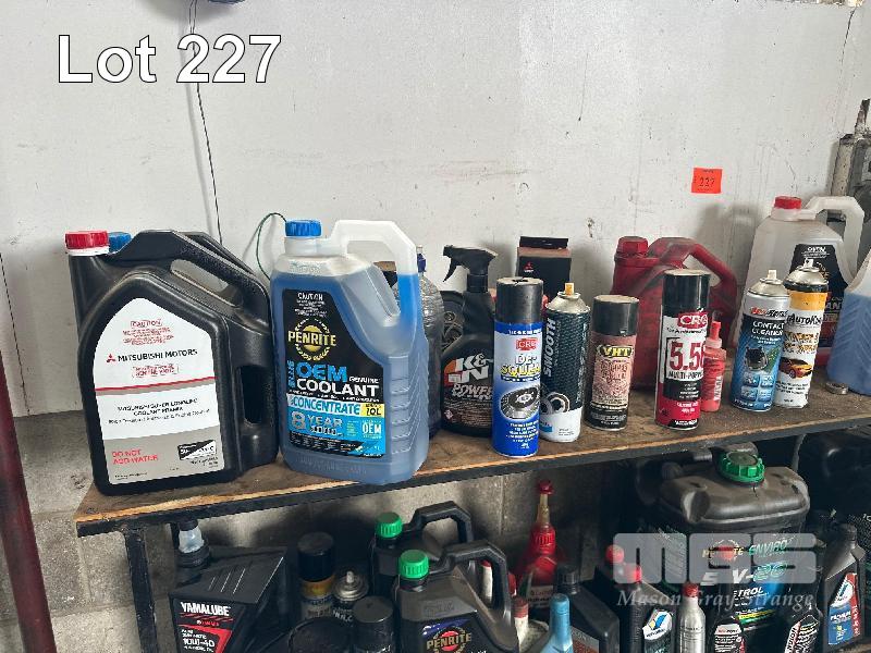LARGE QUANTITY OILS, COOLANT BRAKE CLEANER, TUNE UP FLUSH, AEROSOL, PUMP, DE-SQUEAK, ETC