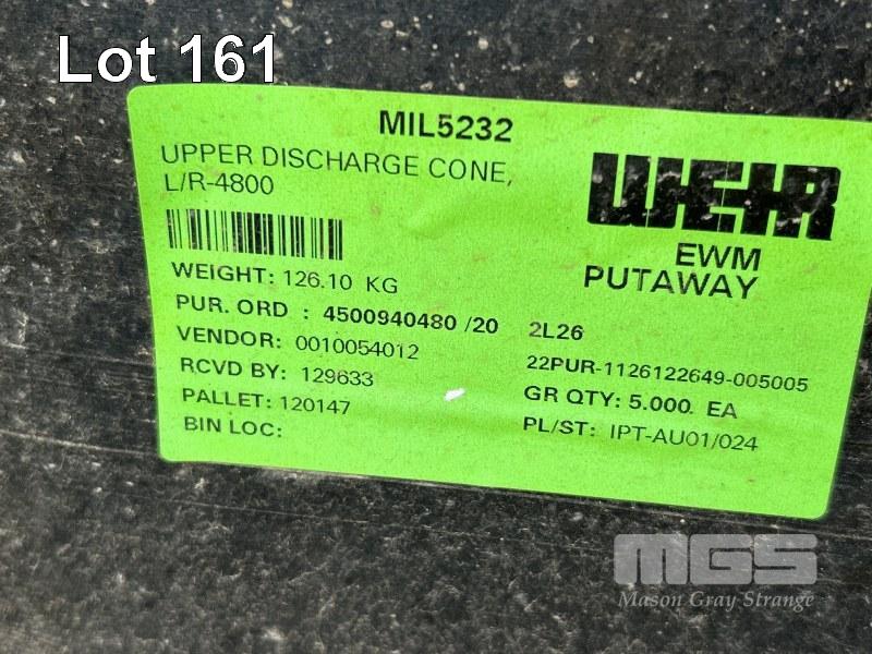 6 x RUBBER COATED STEEL UPPER DISCHARGE CONES, WEIR, EWM PUTAWAY