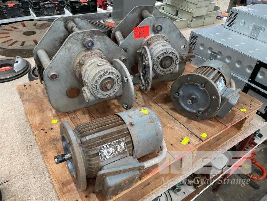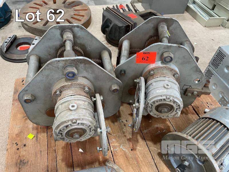 2 x BEAM TROLLEYS, RA GEARBOX DRIVE, SUIT 200mm BEAMS WITH GMC MOTORS, 0-75kw, 415V