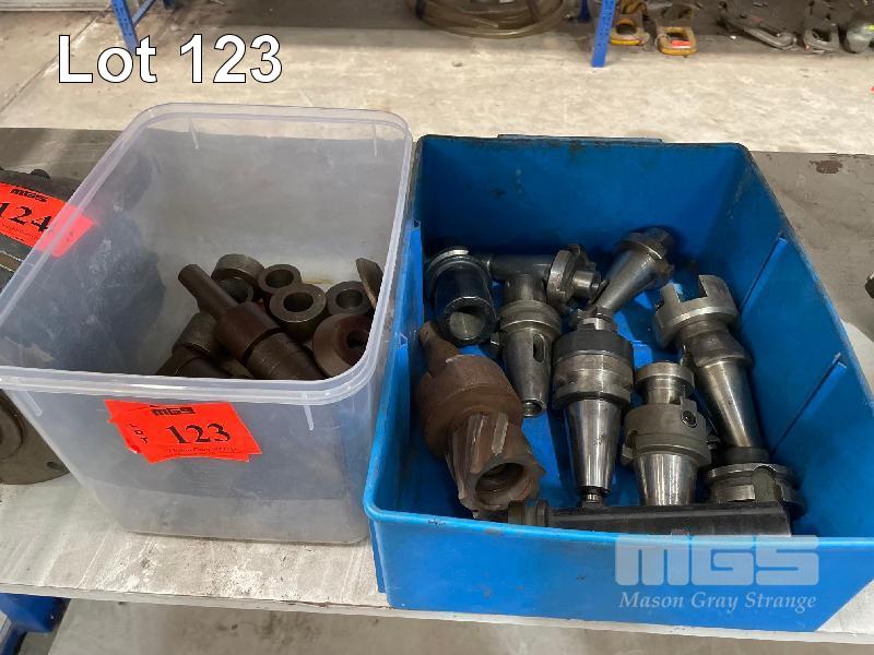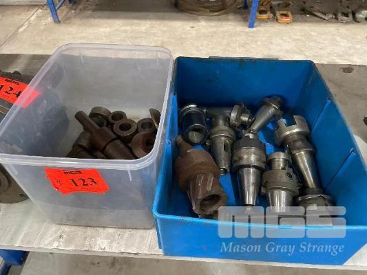 ASSORTED ARBOR SPACES, 1 x TUB & 10 MACHINE TOOL HOLDERS
