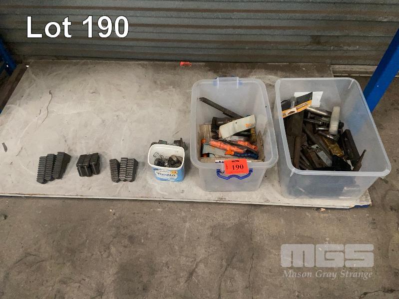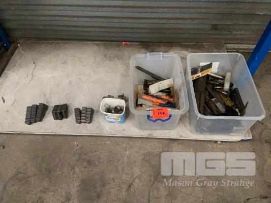 ASSORTED MACHINE TOOL PARTS, LATHE TOOLS, COOLANT HOSES, BORING BARS & LATHE CHUCK JAWS