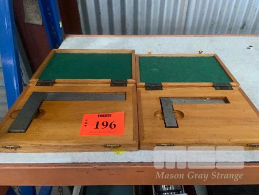 2 x STEEL SET SQUARES, 100 & 150mm IN CASES