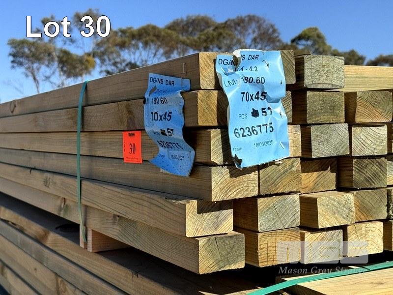 6236775 PACK OF CCA TREATED PINE TIMBER MERCH GRADE 70 X 45MM 57 LENGTHS 9/2.4,2/3.0,14/3.6,30/4.2,1/4.8,1/6.0 = 215 L/M
