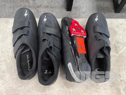 2 x PAIRS SPECIALIZED CYCLING CLEATS, BLACK/RED, WOMENS SIZE 8