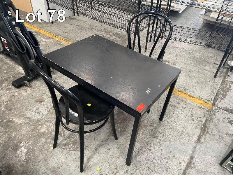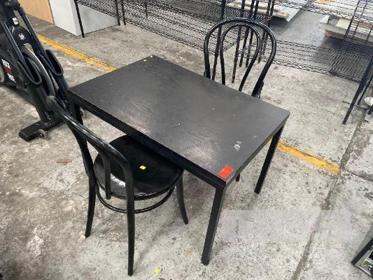 2 x BLACK BENT WOOD CHAIRS WITH BLACK TIMBER COFFEE TABLE, 1000 x 750mm