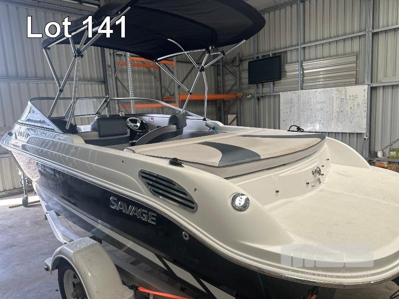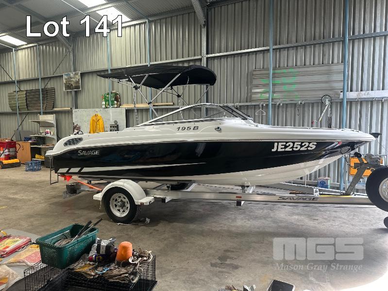 SAVAGE BOWRIDER RUNABOUT BOAT MOD: 195B 5.8 METRE DOM: 2013 REG: JE252S PAPERS, MANUAL HIN: CNTRX57515L213 POWERED BY MERCRUSER 220HP INBOARD OUTBOARD HOURS: 76 SHOWING SWIVEL SEATS, FOLD DOWN BIMINI FULL SAFETY GEAR, ANCHOR WITH ALLOY TRAILER, TECWATER SINGLE AXLE REG: S686 TFH