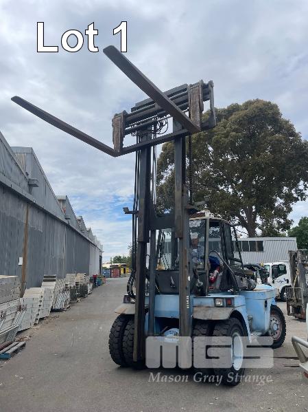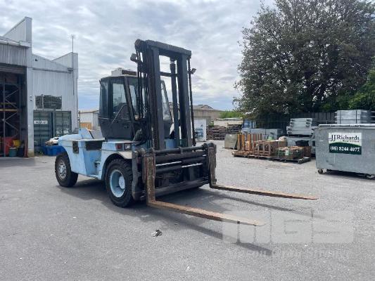 2005 LINDE 10 TONNE FORKLIFT, TYPE: H100, SERIAL: E1X354R00072, JOYSTICK CONTROL, SIDE SHIFT & BLADE POSITION, A/C CABIN, WORK LIGHTS, FRONT & REAR WINDSHIELD WIPERS, PNEUMATIC TYRES IN GREAT CONDITION, AIR BRAKES, TYNE LENGTH: 2450mm, MAST: 3500mm (H) HRS: 1,104 6,940kg CAP WITH BLADE POSITION MODIFICATION, MAX LIFT: 4300mm, 2400mm TYNES, DIESEL KEY #9, DIGITAL CODE START 00850#
