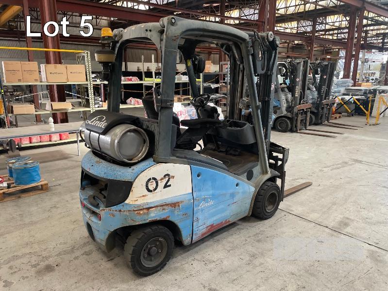 2010 LINDE FORKLIFT, TYPE: H20T-01, SERIAL: H2X391A02541, 2000kg CAP, MAX LIFT: 4625mm CONTAINER MAST, SIDESHIFT, TILT, BLADE POSITION, SOLID TYRES, 3 STAGE MAST DIGITAL CODE START: 67342#, HRS: 9322, LPG DOES NOT INCLUDE LPG BOTTLE