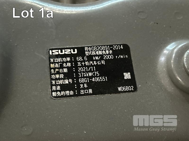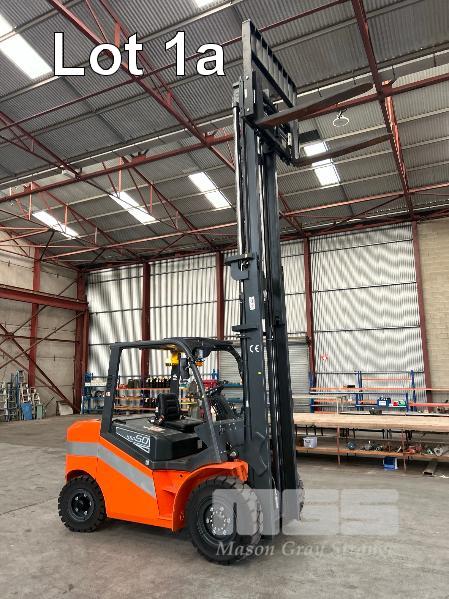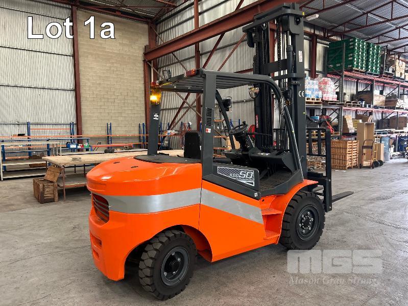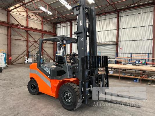 2022 BAOLI FORKLIFT, 5T MODEL: KBD50 S/N: B16012LOO685 RATED CAP. 5000kg POWERED BY ISUZU 69kw, 6 CYLINDER DIESEL ENGINE MODEL: GB20891 HRS SHOWING: 73 ONLY FITTED WITH CLEAR VIEW 2 STAGE MAST, TYNE POSITIONING AND SIDE SHIFT, SOLID TYRES, MAX LIFT HEIGHT 4500mm MAX LIFT WEIGHT 4385 @ 500mm LOAD CENTER KEY# 49