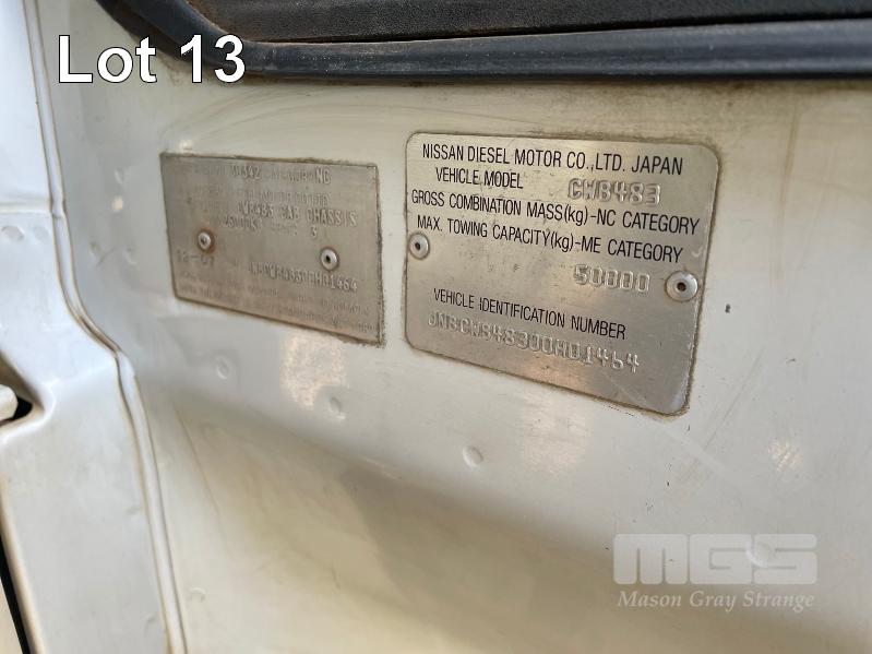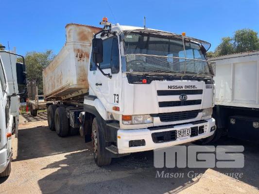 2007 NISSAN UD CW385 6x4 TIPPER REG: SB 88 EX VIN: JNBCWB48300H01464 ODO: 356,428kms SHOWING GVM: 22,500kg GCM: 42,500kg 6 CYLINDER EATON GEARBOX, 4200mm STEEL TIPPER BODY, 2 WAY GATE RING FEEDER, AIR BRAKES (WITH PAPERS, WITH 1 KEY/S)