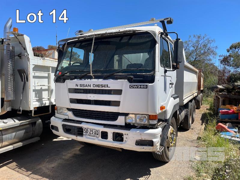 2006 NISSAN UD CW385 6x4 TIPPER REG: SB 25 AQ VIN: JNBCWB48300H00761 ODO: 400,000kms SHOWING GVM: 22,500kg GCM: 42,500kg 6 CYLINDER EATON GEARBOX, 4500mm STEEL TIPPER BODY, 2 WAY GATE RING FEEDER, AIR BRAKES (WITH PAPERS, WITH 1 KEY/S)