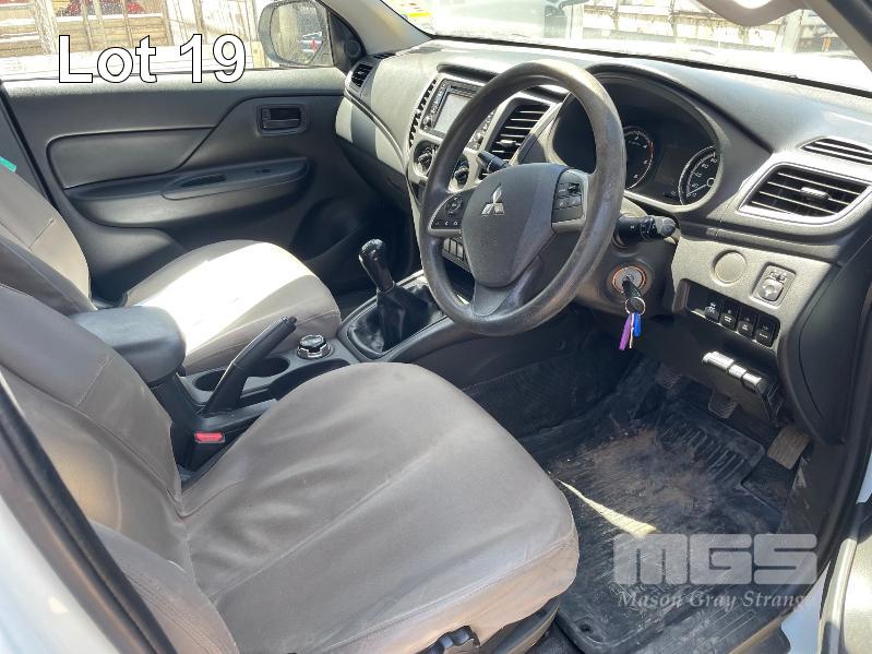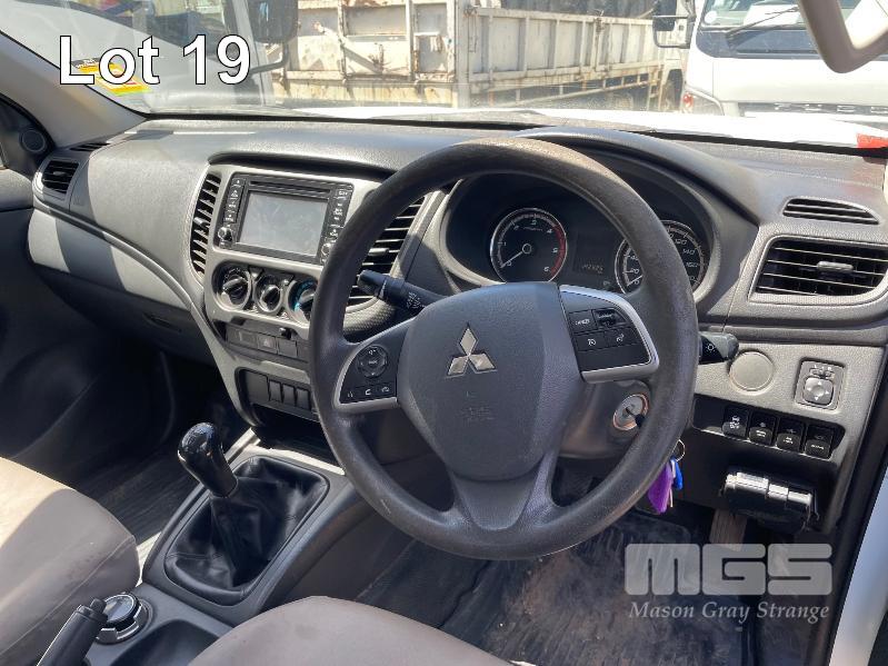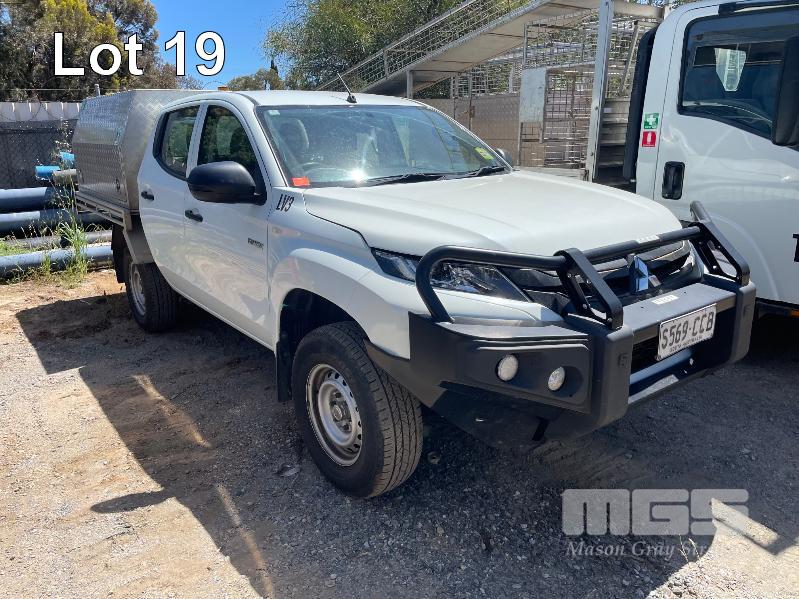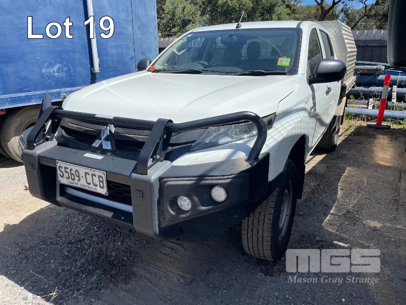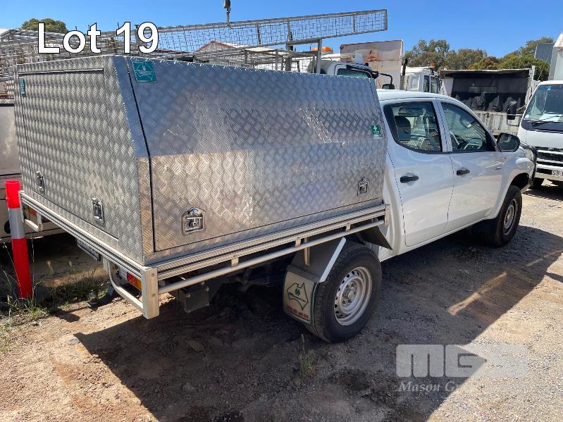 2019 MITSUBISHI TRITON GLX DUAL CAB TRAYTOP 4x4 REG: S569 CCB VIN: MMAZJKL10KH014498 ODO: 142,925kms SHOWING 2.4 LITRE TURBO DIESEL, 6 SPEED MANUAL TRANSMISSION, 4x4 AIR CON, CRUISE CONTROL, POWER WINDOWS, TOW BAR, ALLOY TRAY WITH CANOPY TOOL BOX (WITH PAPERS, WITH 1 KEY/S)