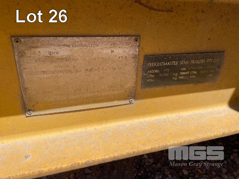 2016 FREIGHTMASTER TANDEM AXLE PLANT TRAILER, BEAVER TAIL REG: SY 70 GC VIN / CHASSIS: 6TWRTT2ECG1009353 ATM: 18,000kg 5000mm DECK & BEAVER TAIL, HYDRAULIC RAMPS 2450mm DECK (W) RING PULL AIR BRAKES