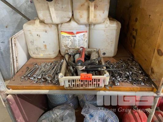 HUGE QUANTITY METRIC & IMPERIAL SPANNERS, 20 LITRE PVC DRUMS & 2 x GREASE GUNS