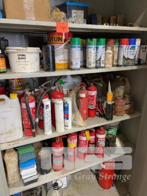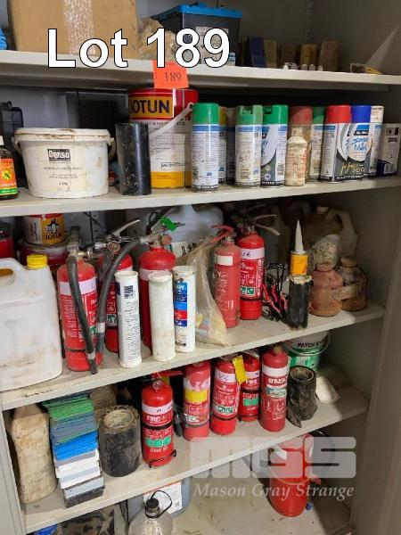 FIRE EXTINGUISHERS, PAINT, ETC CONTENTS OF CABINET