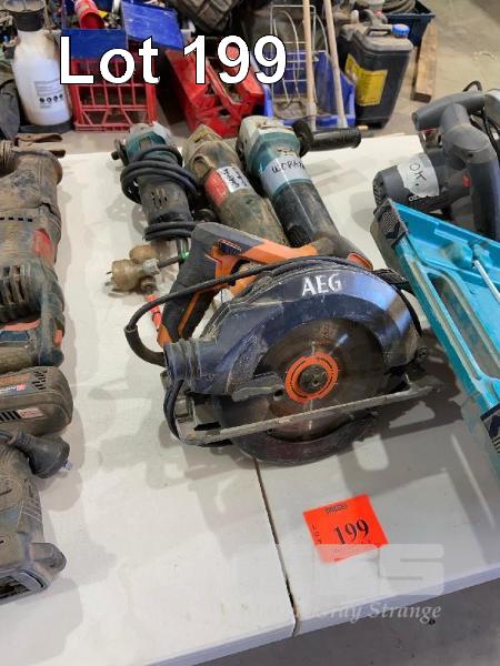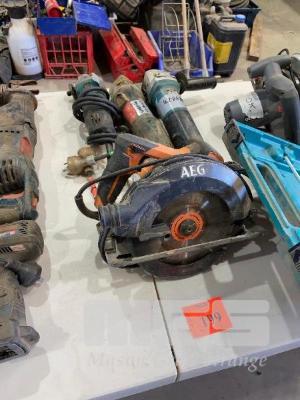 AEG 7 1/4" SAW, 2 x MAKITA GRINDERS & METABO GRINDER