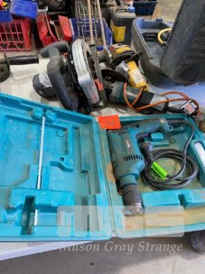 OZITO SAW, MAKITA DRILL & 2 x GRINDERS