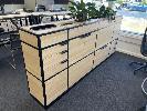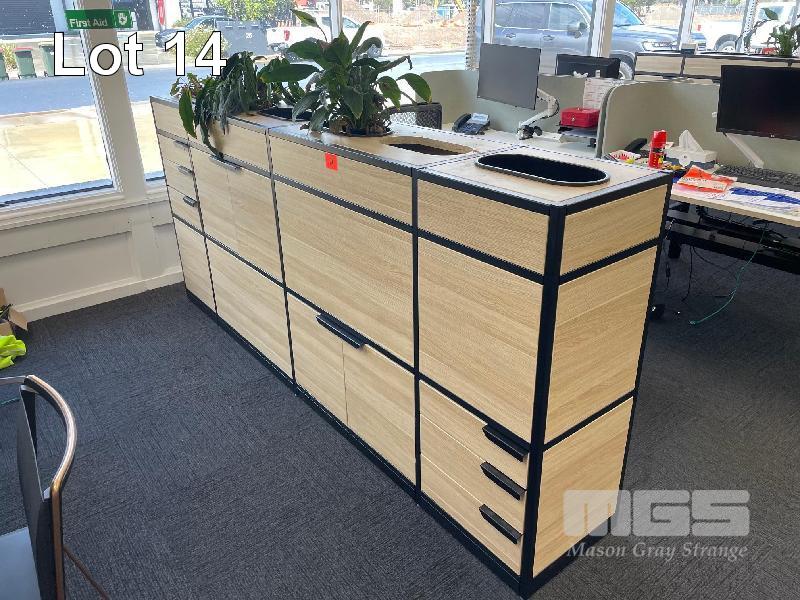 BLACK STEEL FRAME STORAGE UNIT, DOUBLE SIDED 2730 x 450 x 1200mm (H), 12 DRAWER, 8 DOOR, WOOD GRAIN LAMINATE