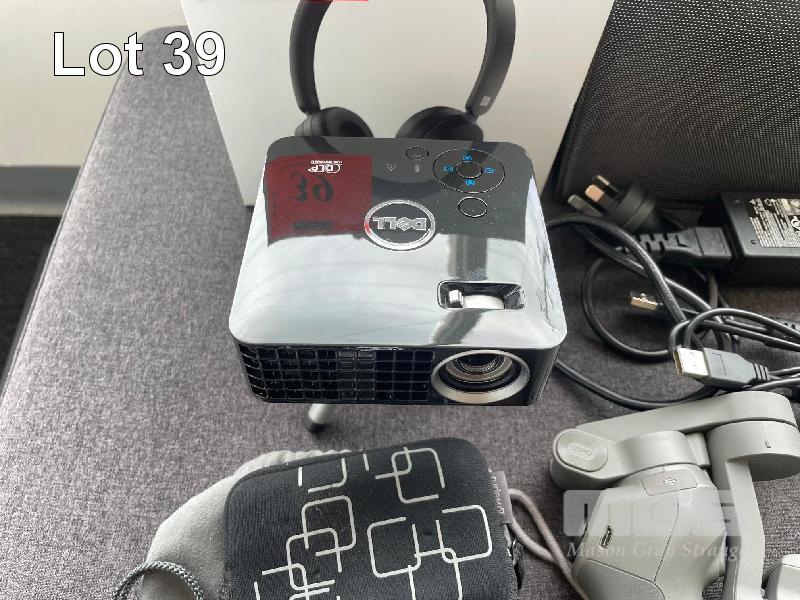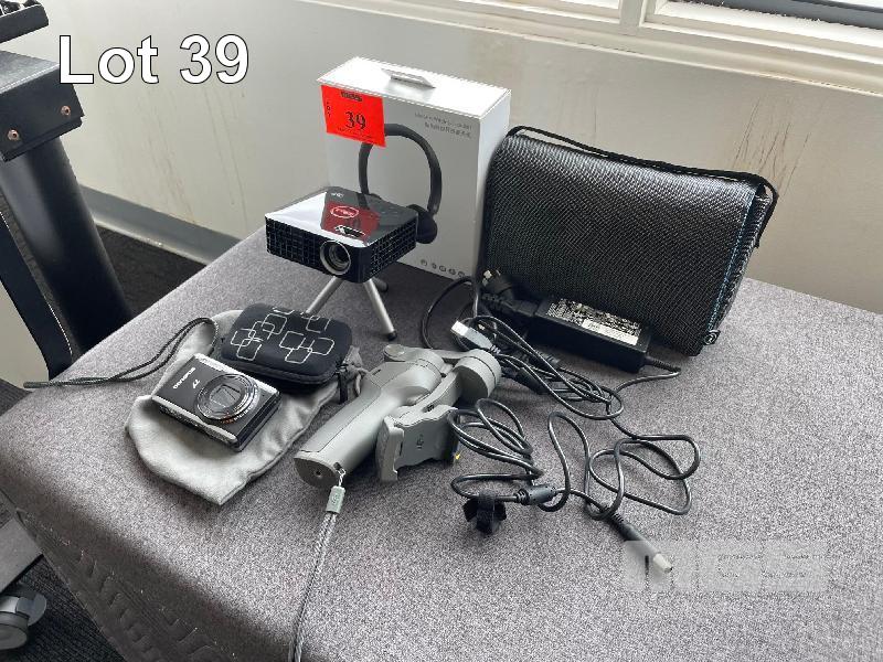 MICROSOFT WIRELESS HEADSET, OLYMPUS DIGITAL CAMERA, MOD: 9010 DELL MINI PROJECTOR, MOD: M110 WITH CARRY CASE, CHARGER & CABLE & OSMO DIGI GIMBLE