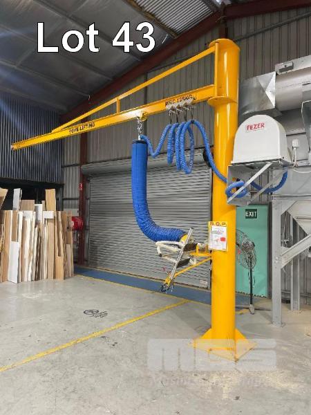 GHE LIFTING SWING ARM CRANE BOOM, FREESTANDING DOM: 2023 S/NO: 15662-2023-12 MAX RATED: 125kg WITH FEZER VACU POWER LIFT MOD: 230/A700 MAX CAP: 120kg WALK WITH CONTROL ARM OVERALL HEIGHT: 4.1m ARM LENGTH: 6.2m