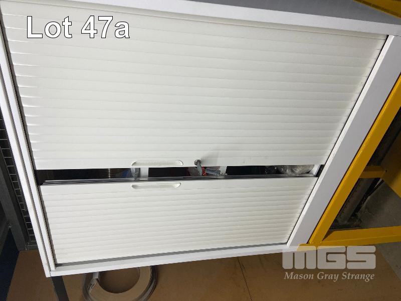 TAMBOUR STOCK CUPBOARD ON YELLOW STAND (LOCKABLE: KEYS PROVIDED) 900 (W) x 450 (D) x 1000mm (H) (NO CONTENT)