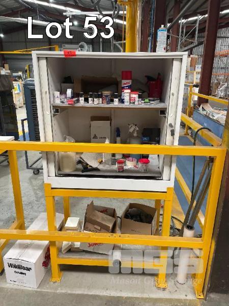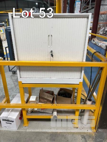 TAMBOUR STORAGE CABINET, 900 x 900 x 480mm ON STAND & CONTENTS