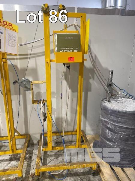MOBILE RISE/FALL GLUING STATION, HAND WINCH, HOSES & SIMALFA GUN LOCKING CASTORS