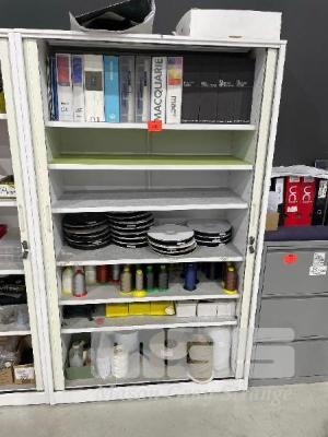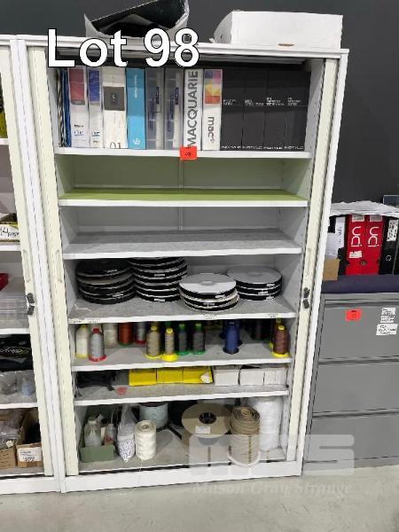 TAMBOUR STOCK CUPBOARD, 2000 (H) x 1250 (W) x 450mm (D) & ASSORTED COTTON REELS