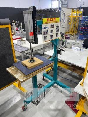 PNEUMATIC PRESS ON MOBILE STAND, HAND CONTROL VALVE, STOCK TABLE & ROTATING MANUAL PRESS, MOBILE
