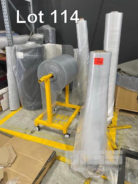 3 x PLASTIC SHEET VERTICAL ROLL OUT STANDS, HORIZONTAL BUBBLE WRAP, ROLL STAND, MOBILE
