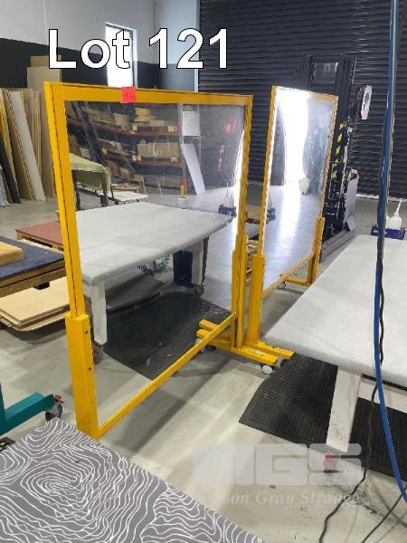 2 x MOBILE MIRRORS, 1200 x 1200mm, LOCKING CASTORS