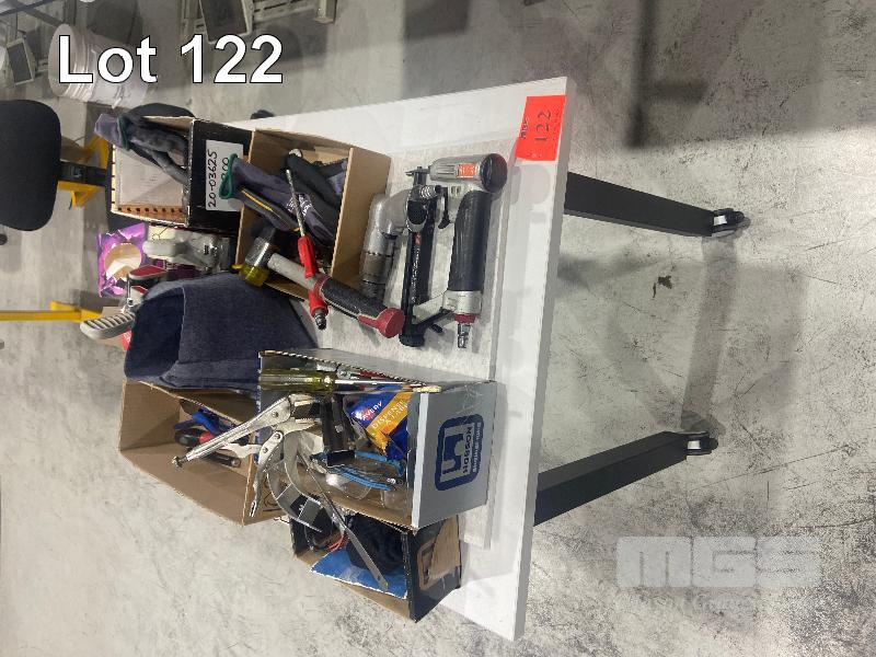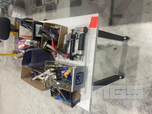 MOBILE TABLE & CONTENTS, HAND TOOLS, STAPLE GUNS, TAPE GUNS, ETC
