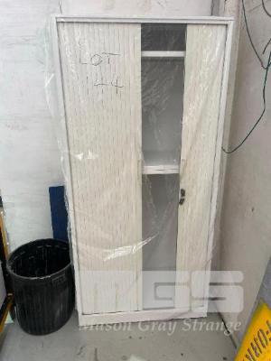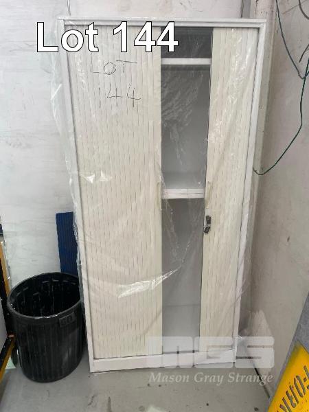 STEEL STOCK CUPBOARD, AS NEW, TAMBOUR DOORS, 1800 (H) x 900 (W) x 480mm (D)